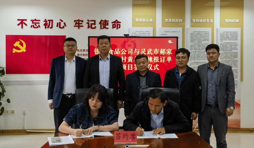 為深入貫徹黨中央關(guān)于實(shí)施鄉(xiāng)村振興戰(zhàn)略的重大部署,認(rèn)真落實(shí)銀川創(chuàng)投集團(tuán)黨委關(guān)于做好郝家橋鎮(zhèn)永清村對(duì)口幫扶產(chǎn)業(yè)扶持工作,綜投公司積極謀劃推動(dòng)黃桃、辣根產(chǎn)業(yè)導(dǎo)入工作,經(jīng)過(guò)近一年時(shí)間調(diào)研、協(xié)調(diào)和推進(jìn),成功將綜投公司參股企業(yè)寧夏銀冠食品有限公司(以下簡(jiǎn)稱“銀冠公司”)優(yōu)勢(shì)農(nóng)產(chǎn)品加工種植業(yè)導(dǎo)入永清村。5月10日,銀冠公司與永清村在綜投公司簽訂了訂單種植合作協(xié)議,簽約訂單種植面積200余畝。綜投公司總經(jīng)理馬曉偉、副總經(jīng)理陳超、銀冠公司總經(jīng)理李紅兵、永清村村委一行出席簽約儀式。